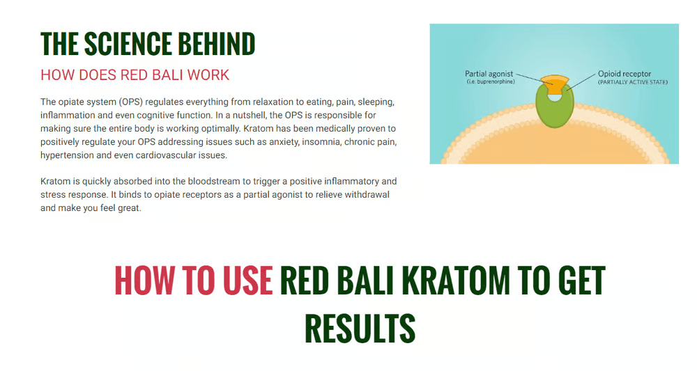 Kratom works WITH your body to ELIMINATE YOUR PAIN BY ATTACHING TO OPIATE RECEPTORS And it goes to work quickly. After over 20,000 clinical studies, it has been proven over and over again ... The MU opioid found in Kratom are the SAME compounds that regulate mood and pain in the brain and body. In just days, the kratom will tune your entire system (the network of receptors found throughout your body, including your brain, organs, glands)... leaving you pain free and feeling years younger. Muscle pain, joint pain, arthritis pain, headaches, and body aches.